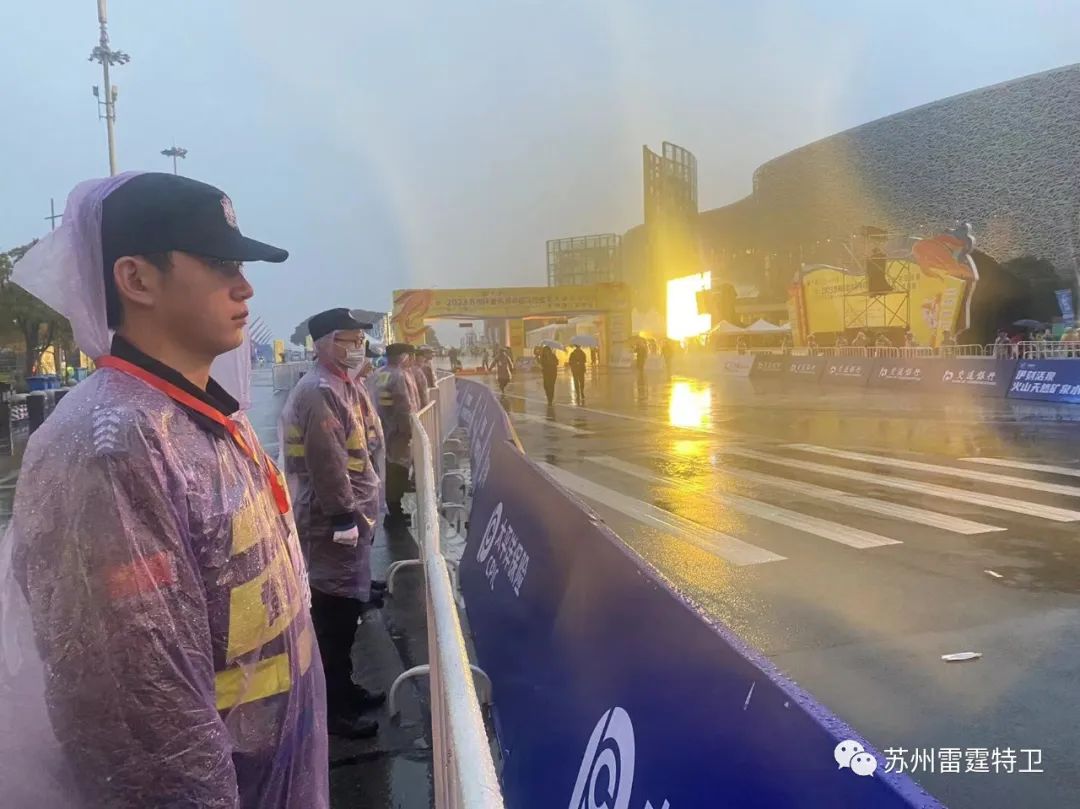 苏州市雷霆特卫保安服务有限公司组织指挥700余名安保人员,在公安机关的指导下,全力以赴投入到安全保卫工作中,按照工作部署细则,定人、定岗、定责,务求提高现场有效管事率,以饱满的热情,优良的作风,圆满完成安保任务,为赛事护航。